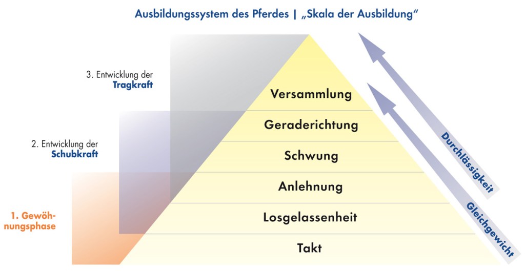 Das Wichtigste in der klassischen Dressur sind nicht die fortgeschrittenen Lektionen, sondern die Basisarbeit nach der Ausbildungsskala. Die erste Stufe ist der Takt, gefolgt von der Losgelassenheit. Diese Grundlagen mögen einfach erscheinen, sind jedoch die schwierigsten zu erreichen und erfordern am meisten Zeit und Aufmerksamkeit.